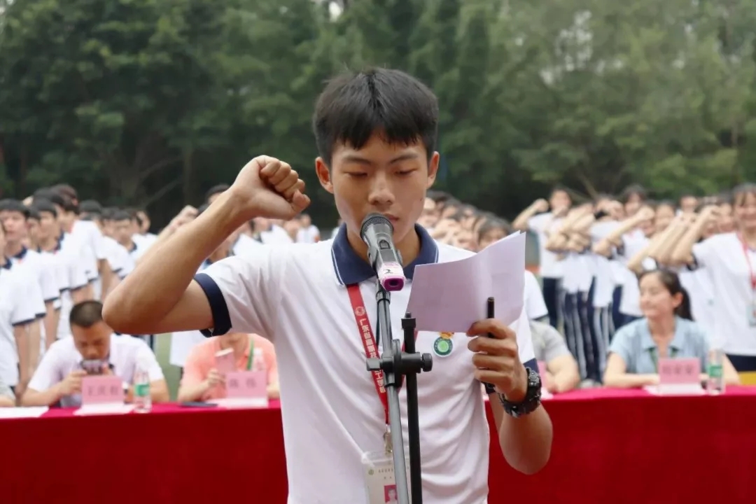廣東省高新技術高級技工學校新團員入團宣誓儀式暨優秀團組織表彰大會于2019年5月27日16:10在西區足球場隆重舉行。參加本次大會的領導有:文建友副校長、學生處曾成處長、學生處陳偉副處長、團委書記劉榮榮、汽車工程系鄭大國主任、藝術與計算機系王慶有副主任、經貿系姚幸連副主任。參加大會的還有在校1833名團員。