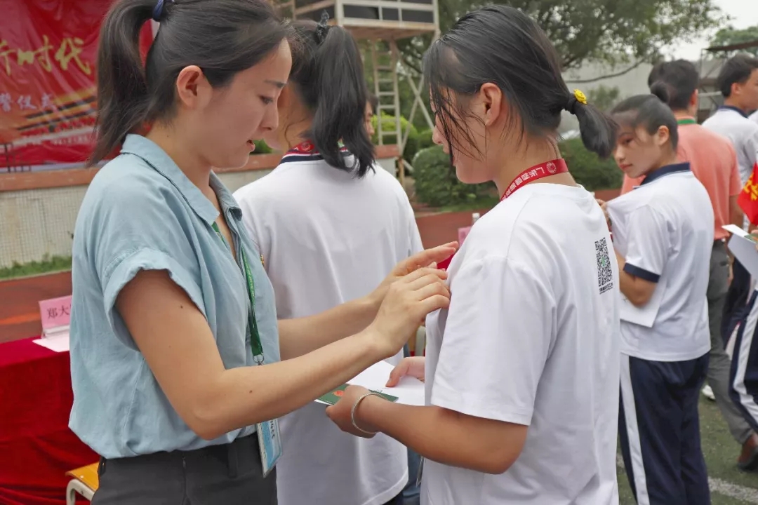 這些是代表共青團而不是普通的裝飾品,也不是一般的重任的標志。我們相信并要求每個團員,努力學積極向上,充分發揮團員模范帶頭的作用。領導和老團員代表給全體新團員發放志愿書、團員證并給他們佩戴團徽。