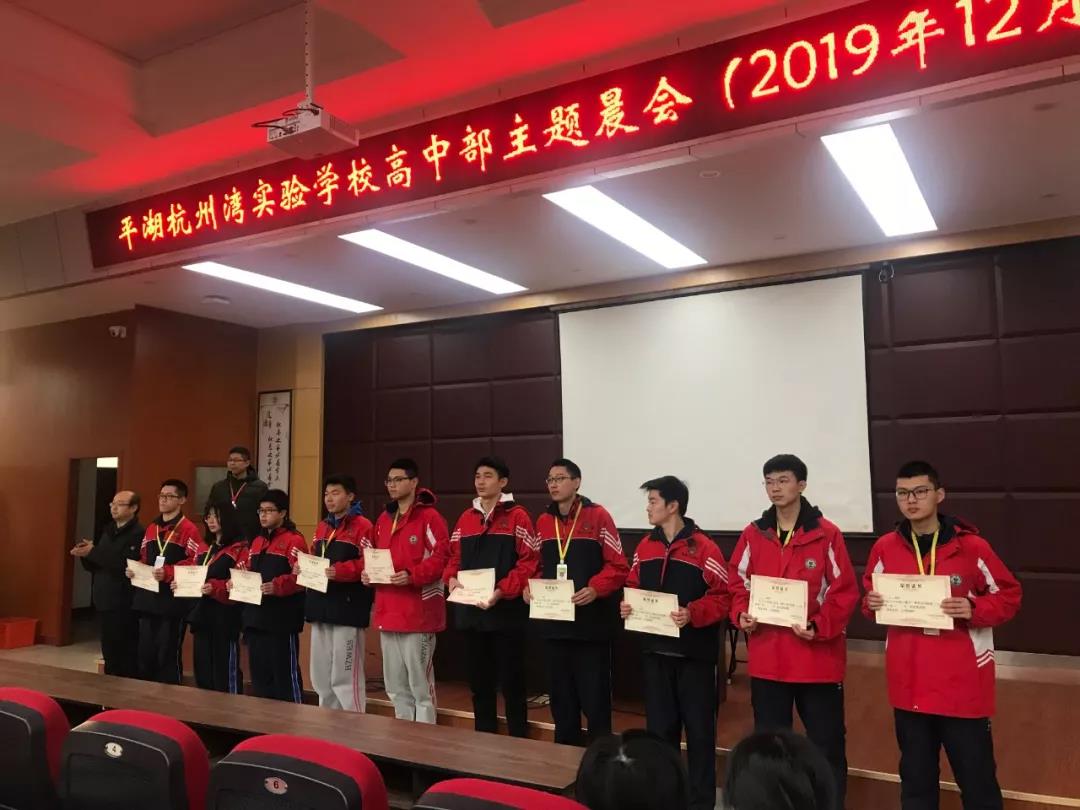 小報告廳內,“高一(2)班是一個團結拼搏,勤奮樂學,愛好和平,自強不息的班級。”隨著主持人陳昕奕、胡怡馨同學的介紹,一周一次的平湖杭州灣實驗學校高中部晨會開始了。在三十余分的晨會上,有高一(2)班的班級介紹,有劉廣興副校長對授獎班級和寢室的名單宣布,有張朝主任對成績優秀學生的頒獎儀式,有王域主任組織的十大學星、優秀班干部、優秀課代表、自律模范、道德模范、優秀學生會成員、優秀宿舍成員的民主投票。大會在緊張而有秩序高效地進行著。