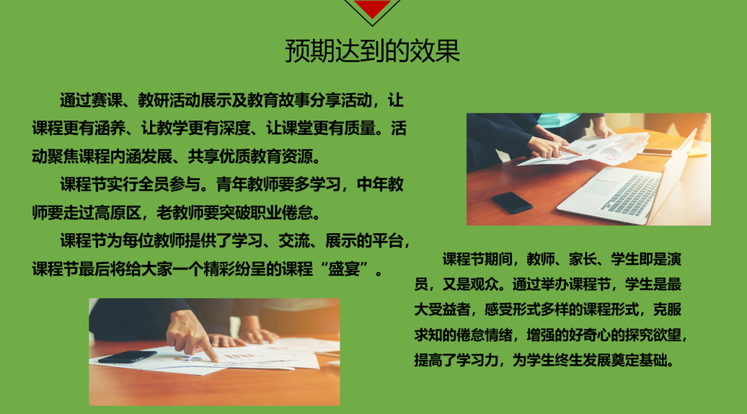 吳燕校長首先從課程節的意義出發,讓大家明確了課程節開展的重要意義。然后從國家級課程展示、地方課程展示及校本課程展示、大課堂展示、優秀教研活動展示、班主任班會課比賽、家長講堂、優秀校本課程匯展及匯演等七個方面進行了具體的闡述,讓大家找到了落實的方向。最后吳燕校長對本次課程節的圓滿進行表達了衷心的祝愿和滿滿的期待。她表示:本次課程節為每位教師提供了學習、交流、展示的平臺,最后將給大家一個精彩紛呈的課程“盛宴”。課程節期間,教師、家長、學生即是演員,又是觀眾。通過舉辦課程節,學生是最大受益者,感受形式多樣的課程形式,克服求知的倦怠情緒,增強的好奇心的探究欲望,提高了學習力,為學生終生發展奠定基礎。