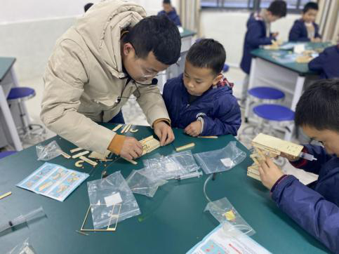 在大課堂開(kāi)課之前,柴老師先確定了所授課的學(xué)段為三、四年級(jí),又挑選了符合這一學(xué)段學(xué)生思維發(fā)展的小制作。做好一切準(zhǔn)備工作后,“柴小小科技課”正式開(kāi)課了,但在剛開(kāi)始上課的時(shí)候,柴老師還在擔(dān)心學(xué)生不喜歡,因?yàn)檫@節(jié)課只是鍛煉學(xué)生的組裝、拼接能力,但出乎意料的是,學(xué)生在大課堂上表現(xiàn)出了極大的熱情。